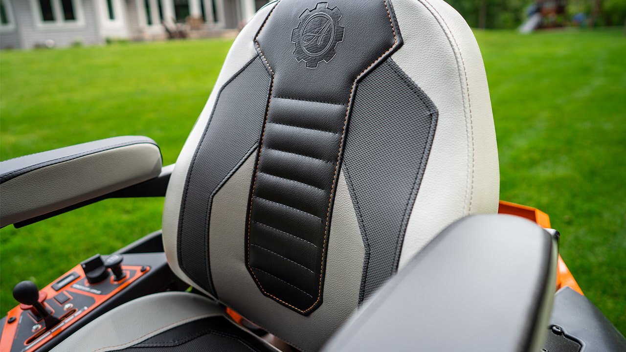 Featuring our most powerful engine, the 24 hp/726 cc Kawasaki® FR730V 60” ENVY™ ELITE CUTTING SYSTEM fabricated deck is 5½” deep and made of 10-gauge steel Fully tubular steel frame, Self-adjusting belt technology, High-Back Padded Seat and armrests, Foot-operated deck lift