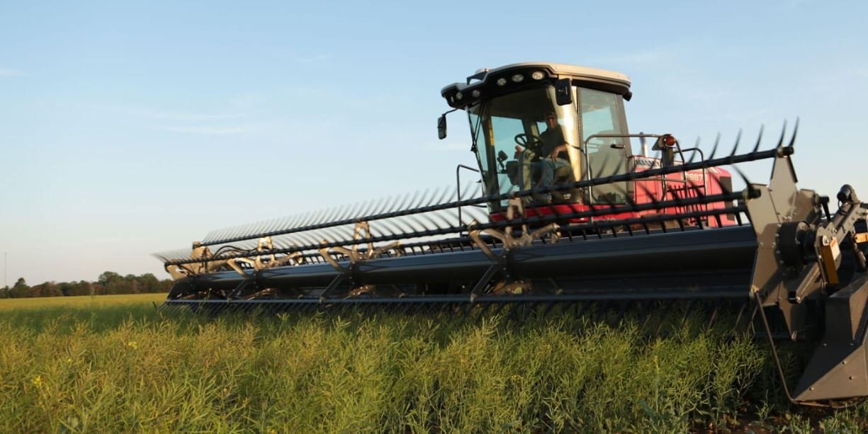 The tandem header drive pump of the WR9900 windrower tractor allows for the reel to be independently controlled with one pump while the other controls the sickles and belts. This means a dedicated smooth power source for the reel to power through downed or tough crops.