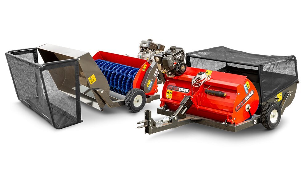 Sweep up debris from your lawn with the new Lawn Sweeper from MK Martin. With a 21 cu.ft. hopper capacity, durable mesh netting, and a 46" wide broom, it takes fewer trips to get the job done. The poly bristle broom is gentle on your lawn and tough on debris. The handle on the side of the hopper and pivoting net frame allows for quick and easy dumping letting you finish the job even faster.