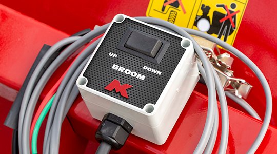 An electric actuator adjusts the height of the broom for effective cleaning.
